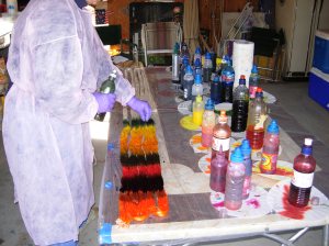 Early in the morning on a bright sunny day, I began by setting out the dye bottles.